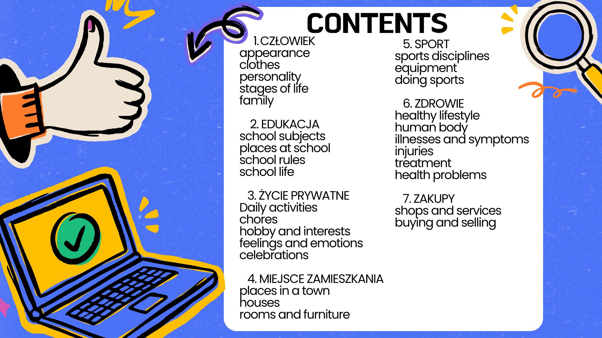 ✅ Powtarza słownictwo i struktury we wszystkich najważniejszych działach tematycznych.