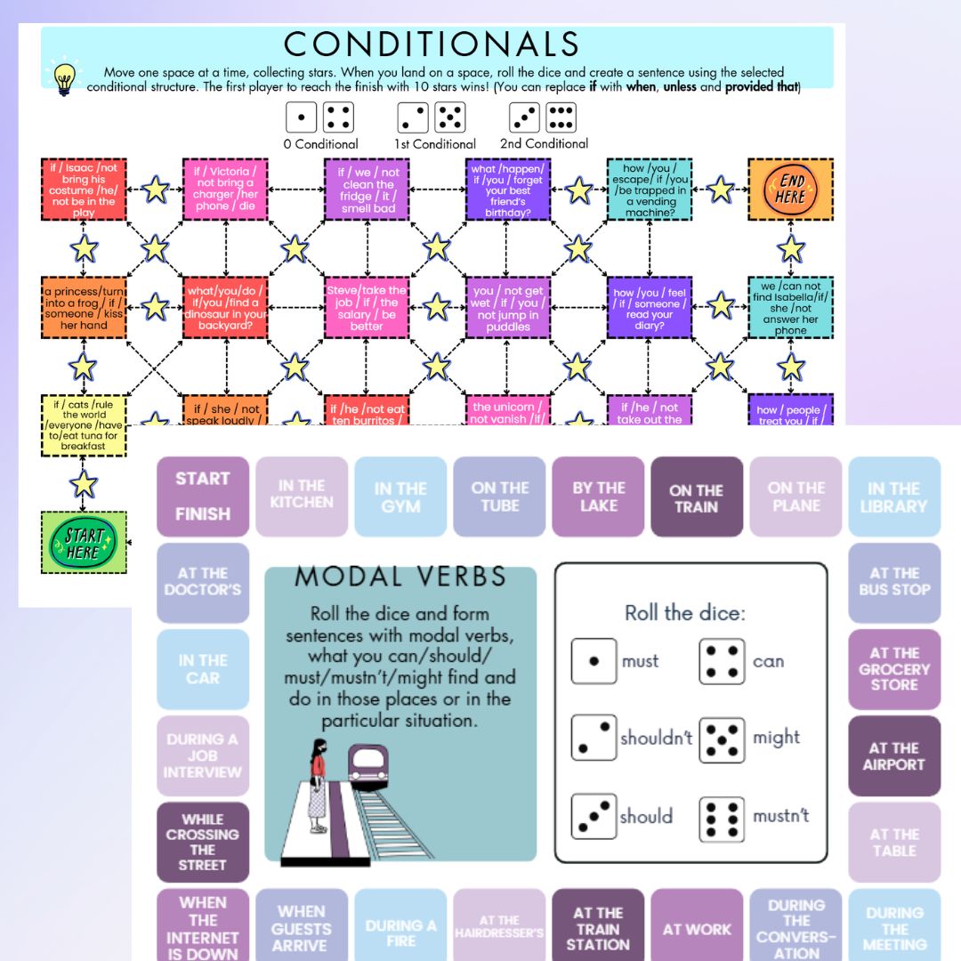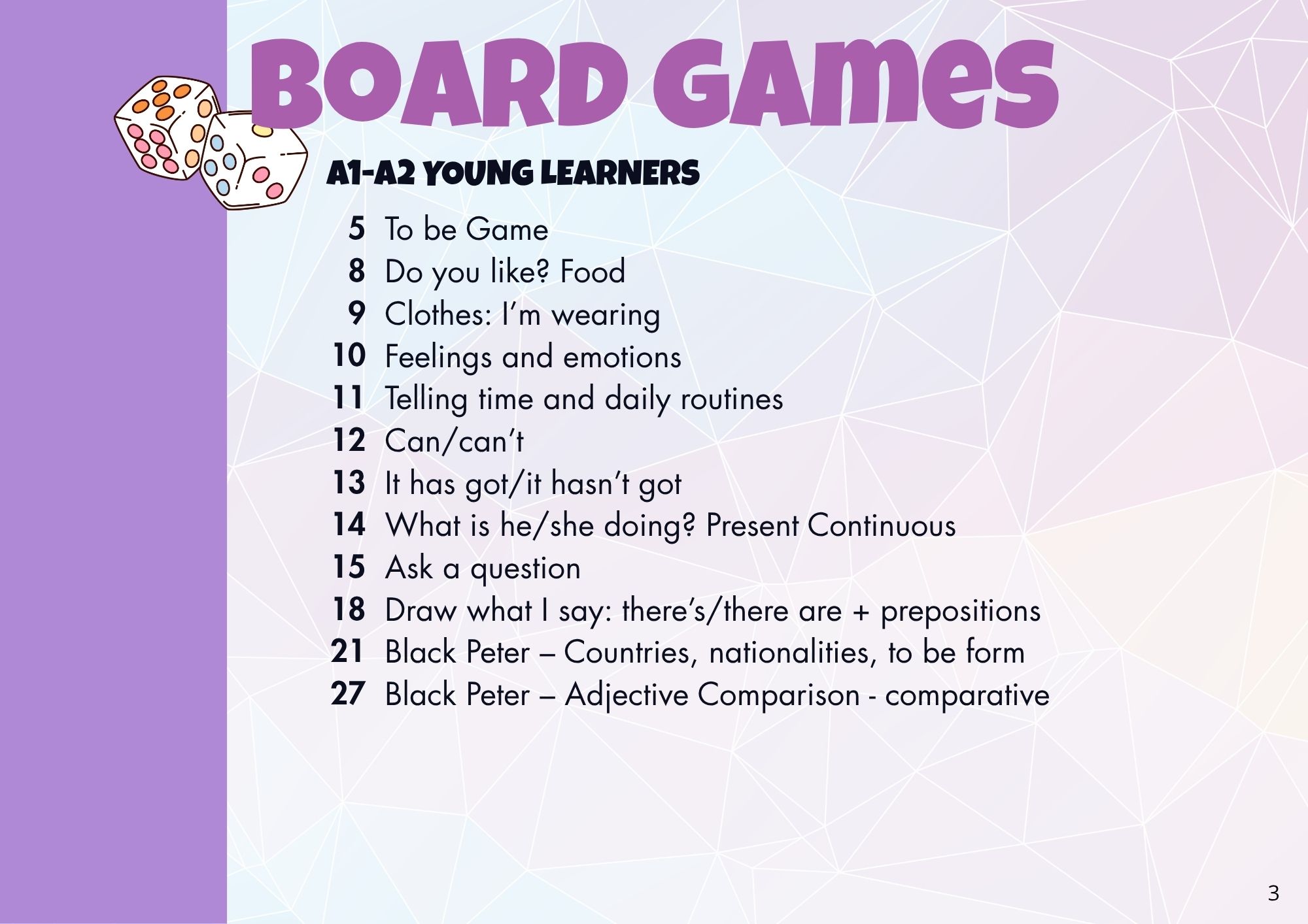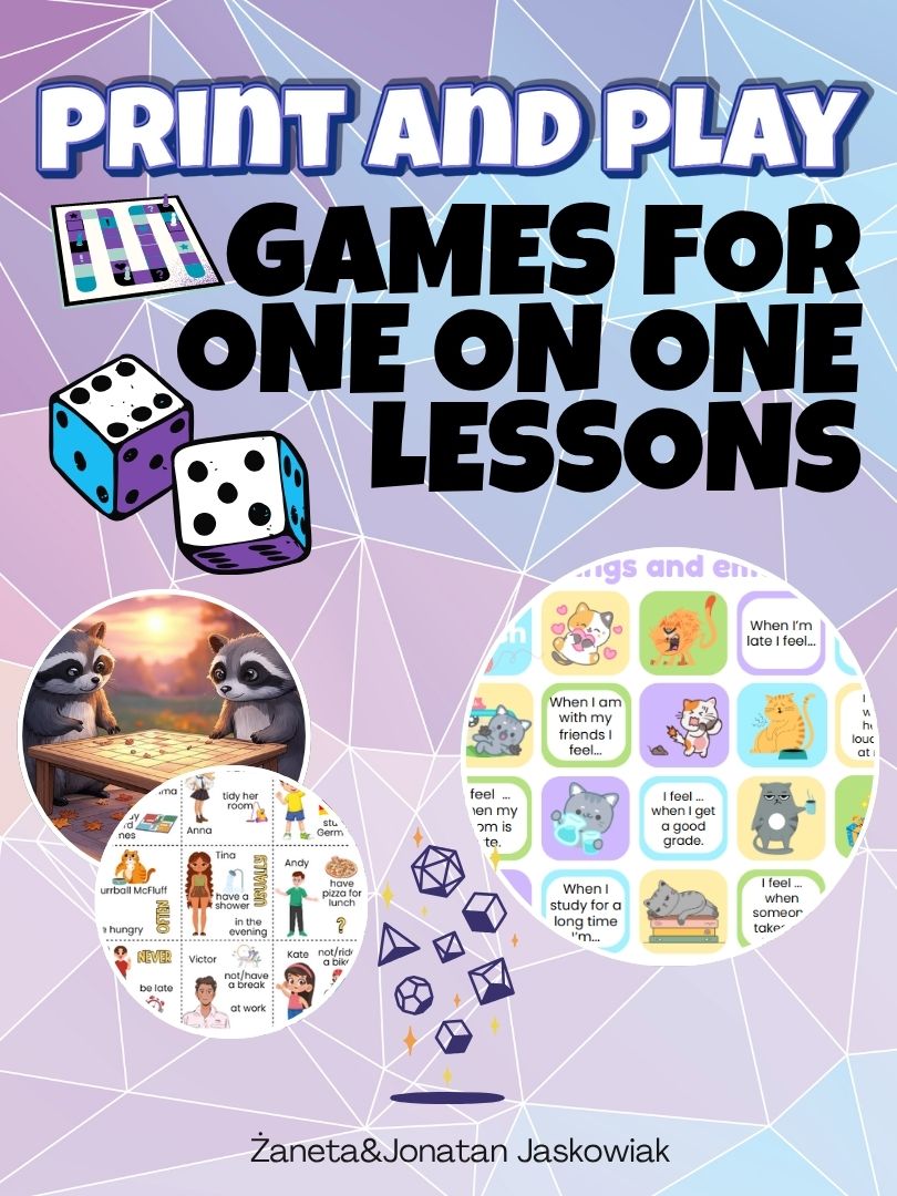 Print and Play to zbiór gier planszowych i kart aktywności stworzonych z myślą o lekcjach indywidualnych języka angielskiego (i nie tylko). Zawiera propozycje zarówno dla młodszych uczniów na poziomie A1–A2, jak i dla bardziej zaawansowanych na poziomie B1–C1. W materiale znajdują się m.in. gry gramatyczne: karciane, planszowe, gry 4-in-a row, karty do gry w Czarnego Piotrusia (Black Peter) karty reakcji, gry planszowe z angielskim słownictwem, gry na platformie Wordwall, uniwersalne karty z regularnymi i nieregularnymi czasownikami i wyrażeniami oraz kreatywne startery historii, aby ćwiczyć swobodne tworzenie opowiadań. Wszystkie elementy są przygotowane do wydruku i laminowania w celu wielokrotnego użytku. Materiał pozwala na elastyczne łączenie różnych kart i plansz, dzięki czemu można łatwo dopasować zadania do potrzeb ucznia.
